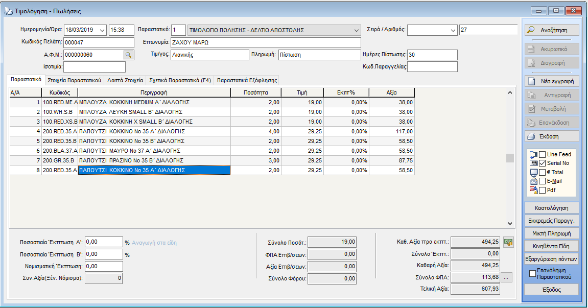- Δυνατότητα συμμετοχής διαφορετικών πωλητών για κάθε είδος ανά παραστατικό,