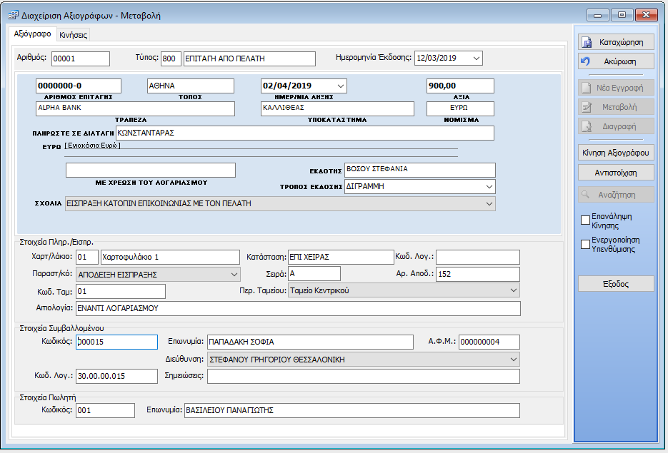 - Αναλυτικά οικονομικά στοιχεία (προμήθειες, πληρωθέντα, υπόλοιπα κ.α.).