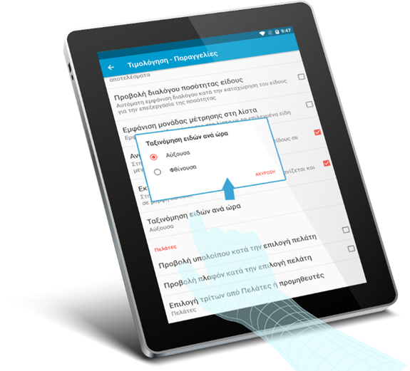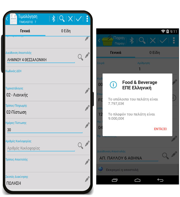 - Έκδοση Τιμολογίων σε θερμικό εκτυπωτή (ασύρματη επικοινωνία μέσω Wi Fi - Bluetooth).