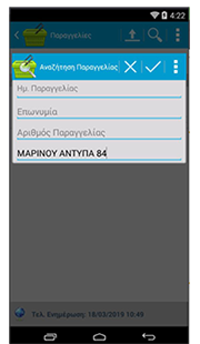 - Καταχώρηση Παραγγελιών με δυνατότητα άμεσης αποστολής στο back office ανά παραγγελία ή μαζικά στο τέλος της ημέρας